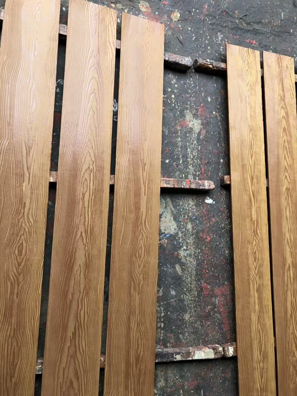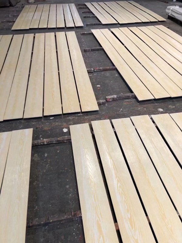 木紋掛板是經高溫高壓在模具中生產出大板后,再切割成長條狀,以達到仿木紋條板效果;