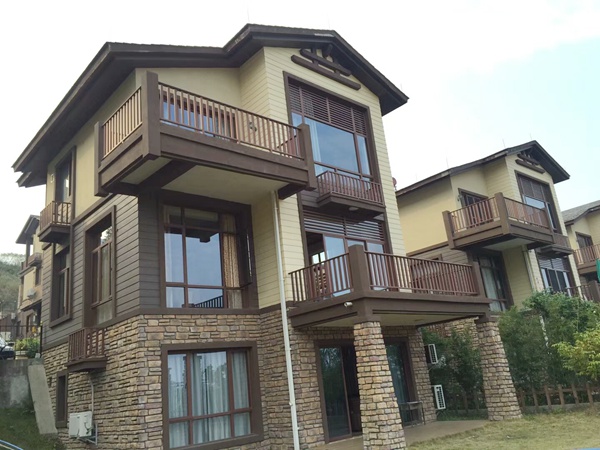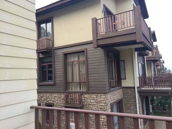 以下度假別墅工程中的木紋掛板顏色是根據風景園區內風格而定,如需了解木紋掛板更多的顏色和設計風格案例,請關注我們微信公眾號。