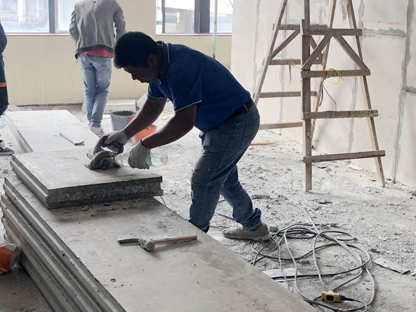 年前最后一個(gè)室內(nèi)隔墻工程在這周竣工了。剛好有國(guó)外客戶(hù)來(lái)訪(fǎng),也參觀(guān)了這個(gè)在廣州荔灣的公寓式酒店工程,看到復(fù)合隔墻板及其安裝后的效果,更加堅(jiān)定他購(gòu)買(mǎi)的信心。