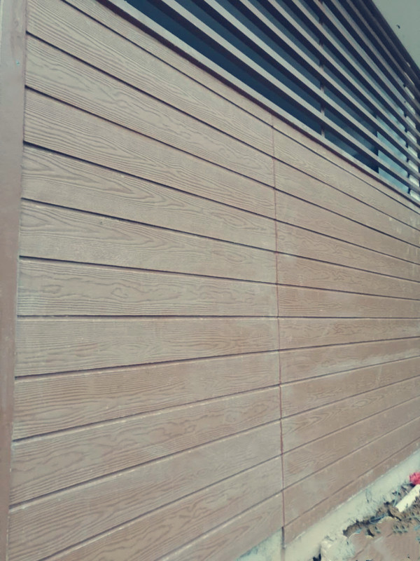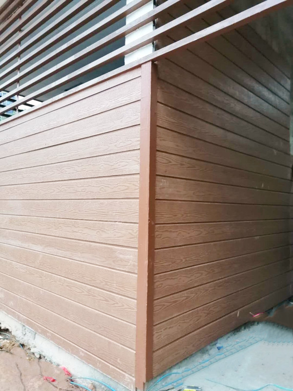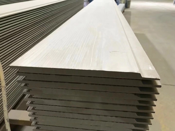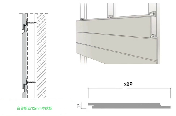 合谷板業(yè)的木紋掛板,常規(guī)款式是平板式披疊安裝,現(xiàn)在推出新款:開槽式扣件安裝。