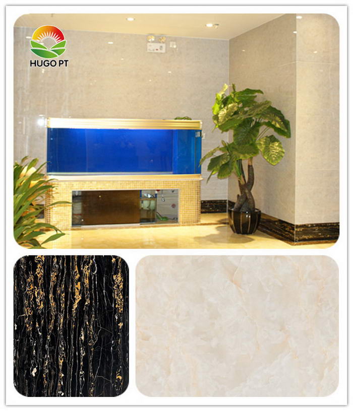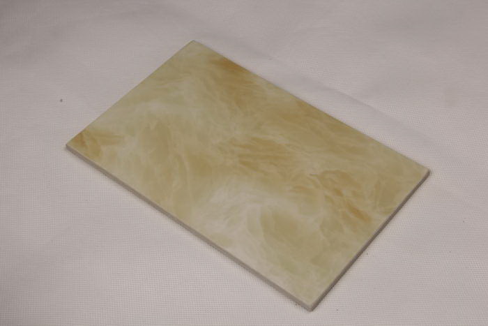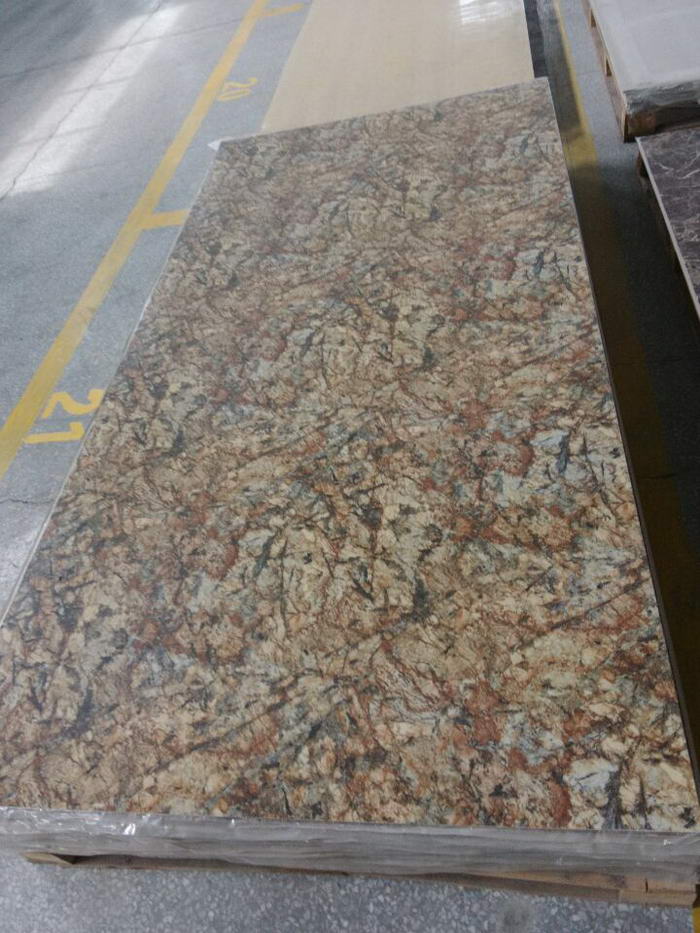 具有天然大理石/木紋/純色/定制圖案等效果,紋路清晰,顏色均勻,避免了大面積裝飾時天然大理石/木材的色差,表面光滑,耐磨,硬度高可達3H-6H,易清潔,耐污染,A級防火,綠色環(huán)保,無輻射,質(zhì)量輕,重量是天然石的1/5,價格是天然石的1/10。